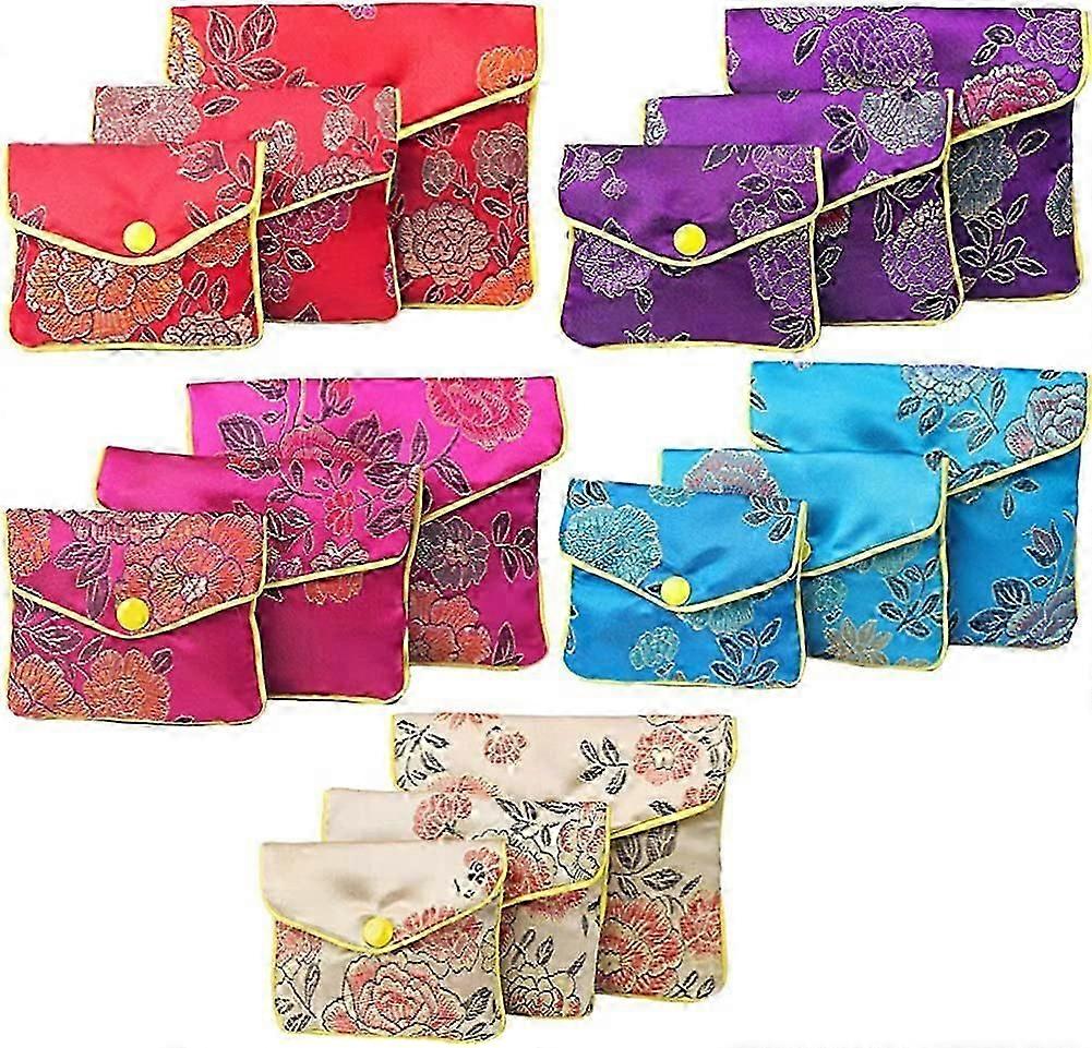 Jewellery Silk Purse Pouch Small Jewelry Gift Bag Jewelry Coin Purse Chinese Silk Embroidered Brocade Jewelry Bag with Snap Button and Zipper for Wome