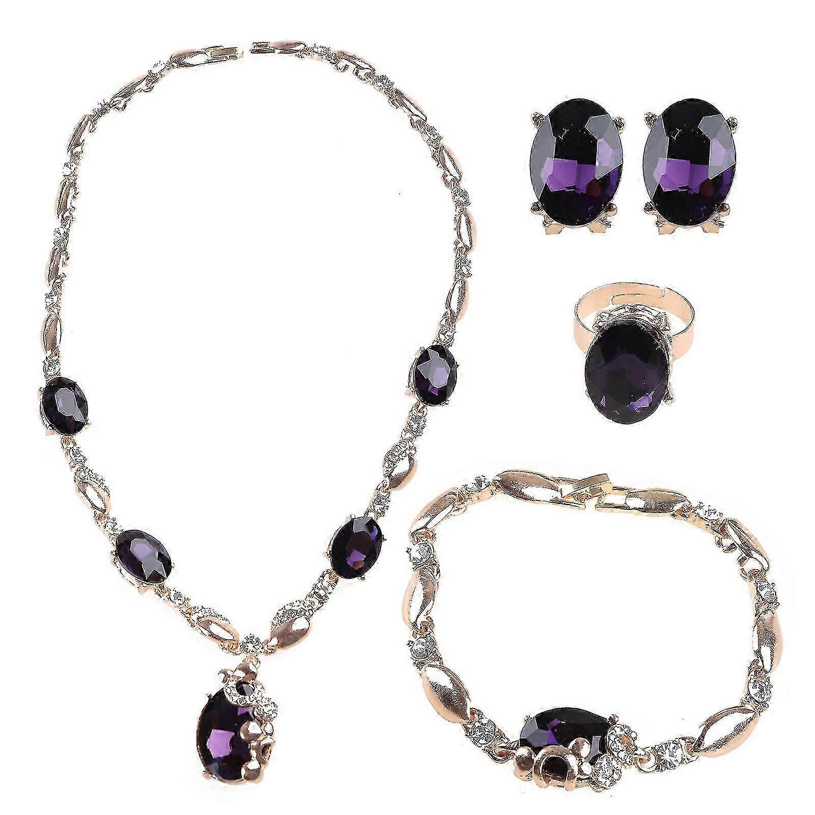 Jewelry Set Purple Gemstone Pendant Necklace Earring Bracelet Ring Party Dress