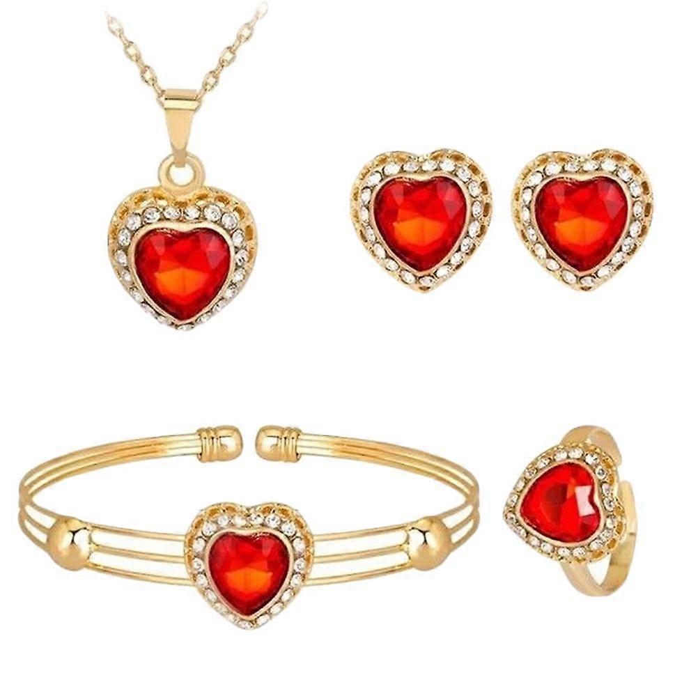 1 Set of Jewelry Set Heart Shaped Necklace Fashion Earrings Creative Bracelet Red