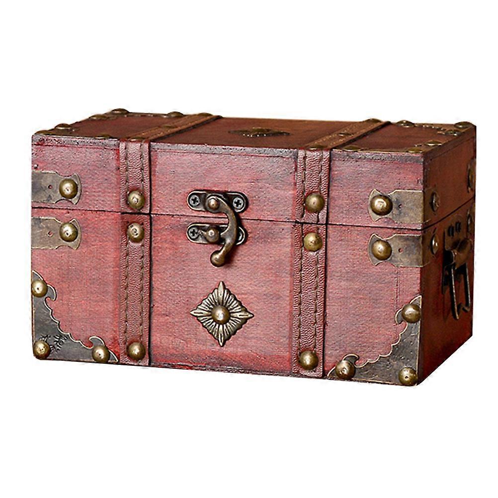 Jewelry Treasure Box Small Storage Box Thickened Wood With Synthetic Leather Strips For Memorabilia Storage 1Pack