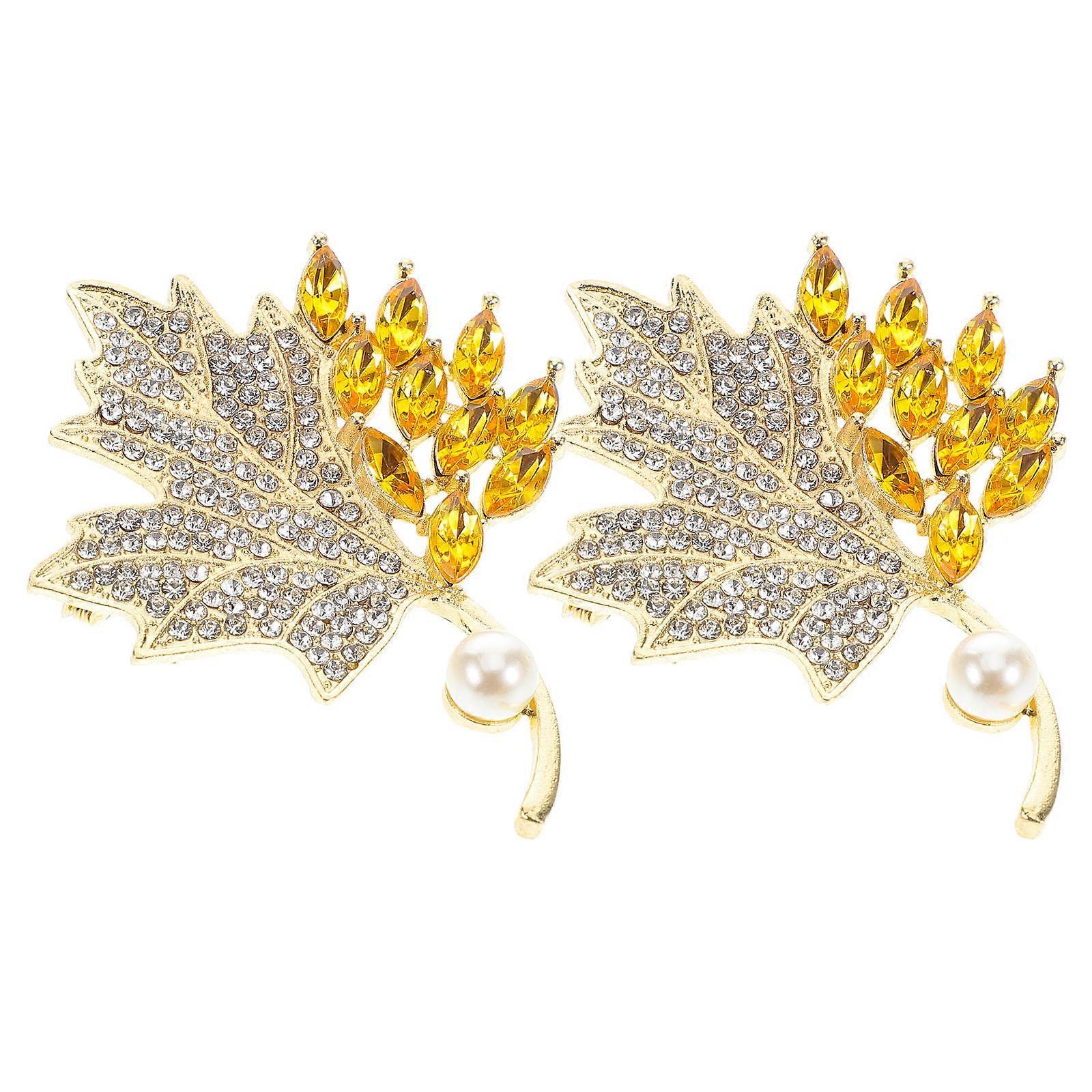 Jewelry Pins And Brooches Maple Leaf Brooch For Women Golden Zinc Alloy Plastic Thanksgiving Party Accessory 2Pcs