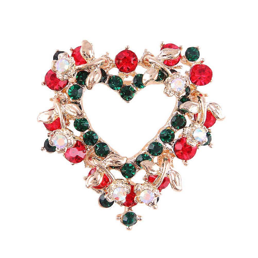 Jewelry Brooches Rhinestone Pin Christmas Wreath Heart Shaped 5x4 5x1cm 1Set
