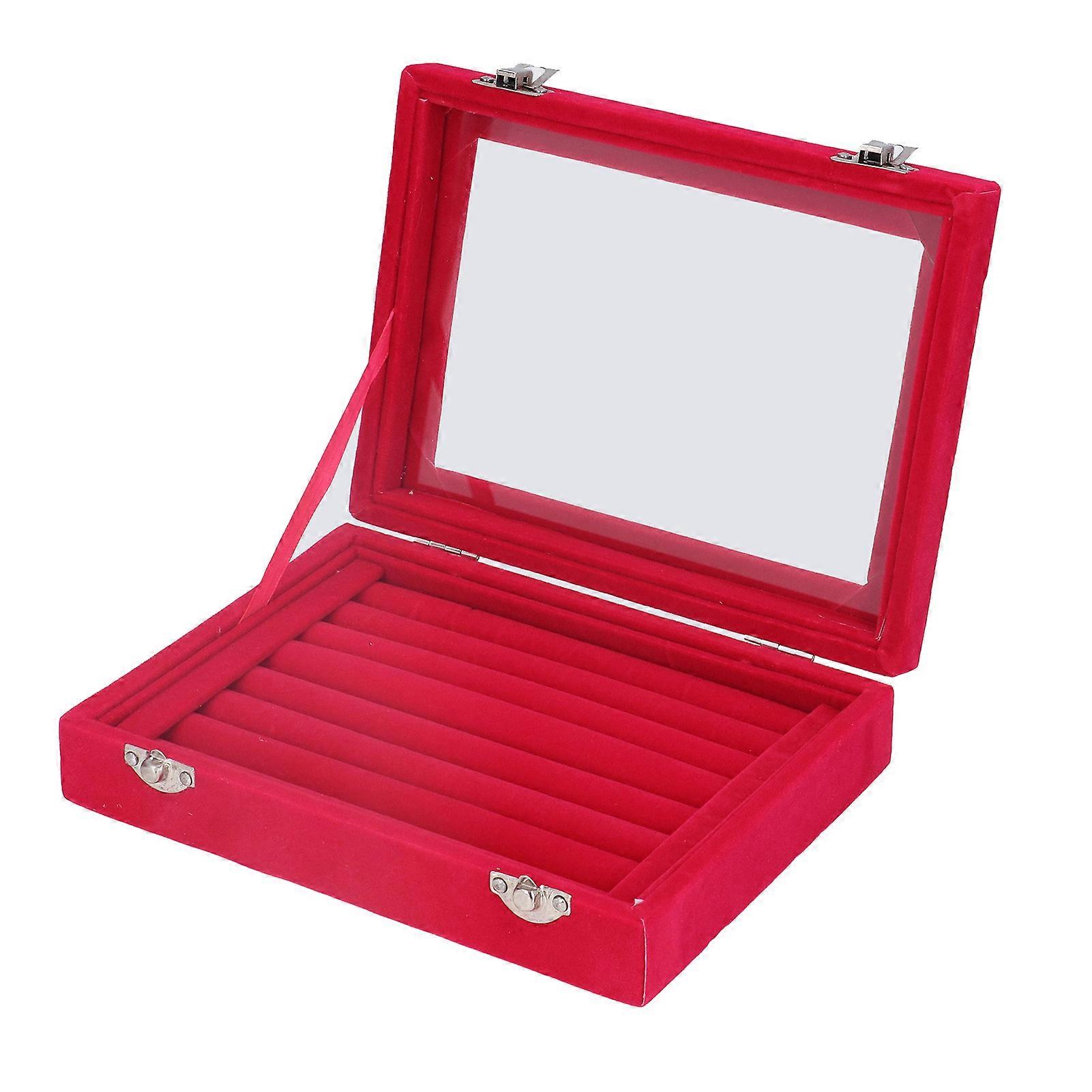 Jewelry Box 7 Slots Velvet Jewellery Holder Storage Display Case for Earring Bracelet Red