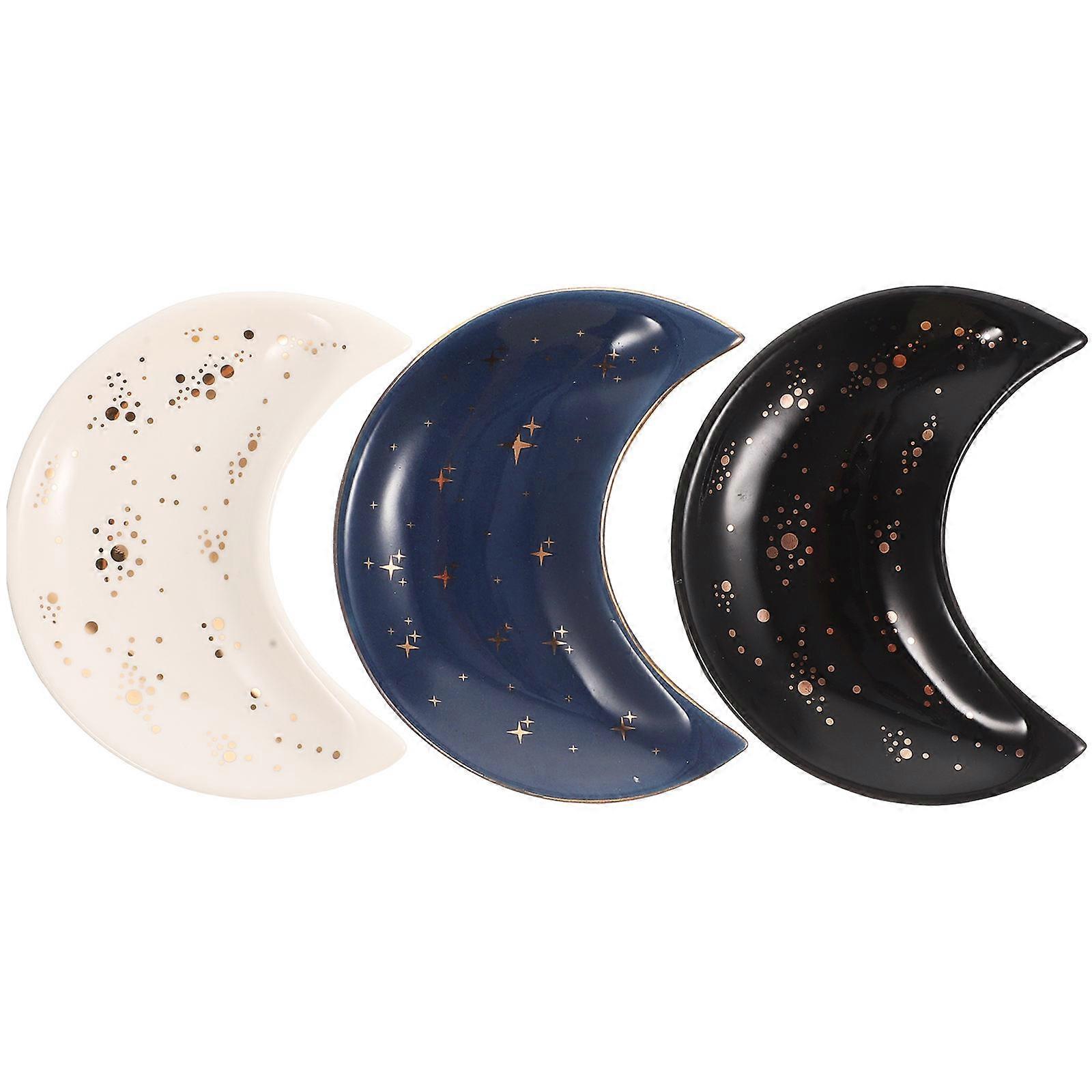 Jewellery Holder Moon Shape Ceramic Tray For Home Decor White With Gold Dots 4.1X3.2X0.6in 3Pcs