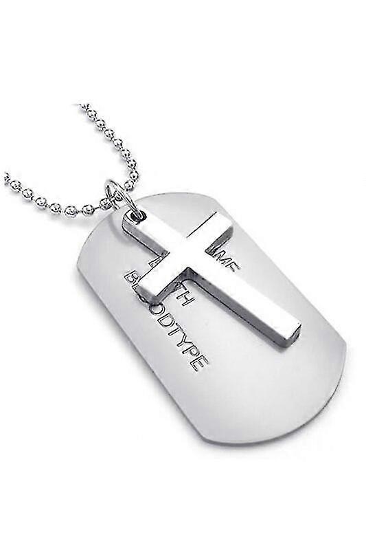 Jewelry Men S Necklace Army Style Cross Tags Dog Tag Alloy Pendant With 68cm Chain Silver