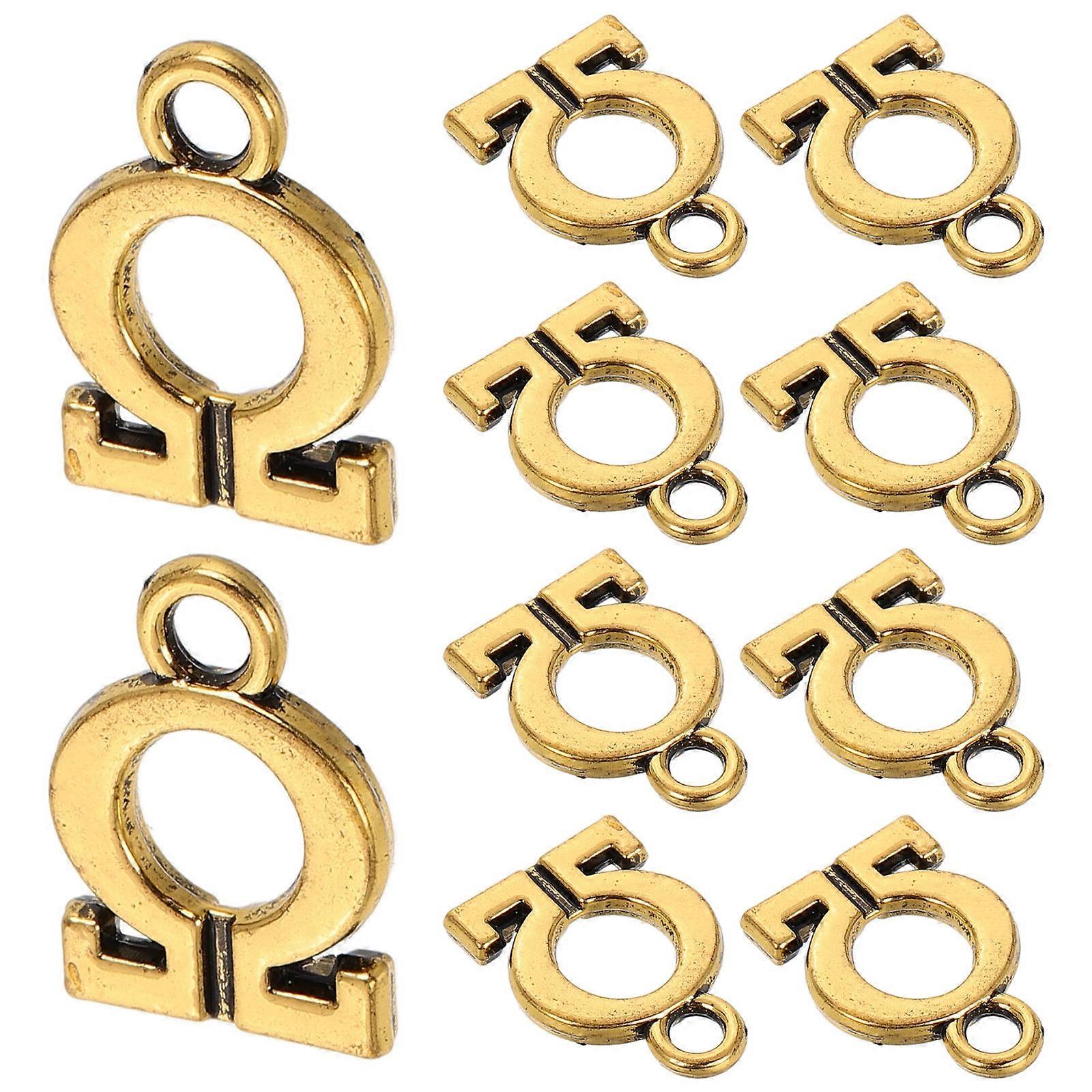 Jewelry Makers Greek Letters Pendant Charms Golden Metal Letter Ornaments for Necklaces Bracelets Rectangular Shape 1.50X1.00X0.30CM 10Pcs
