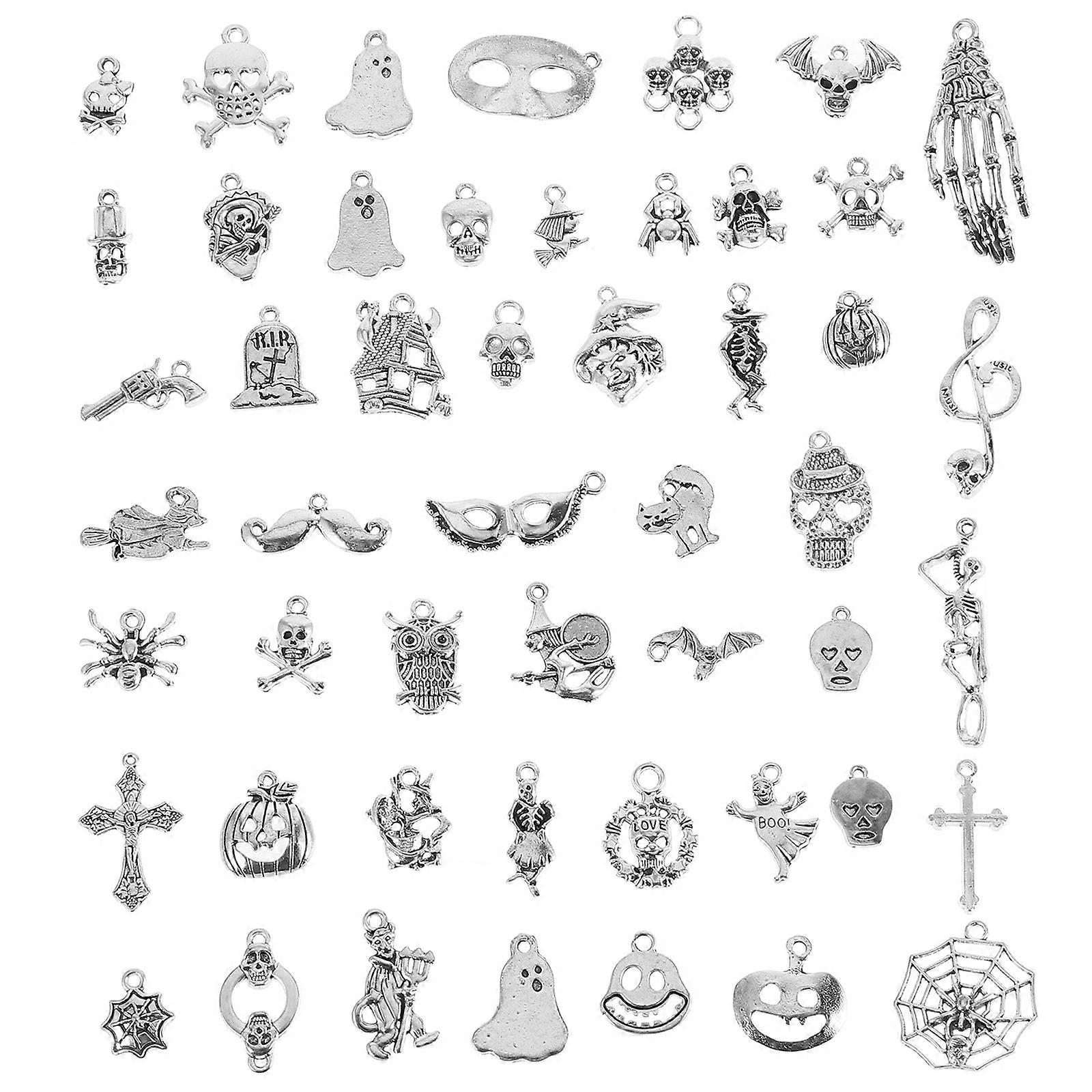 Goth Beads For Jewelry Making Halloween Charm Bracelet Pendant Charms In Alloy Material 50Pcs