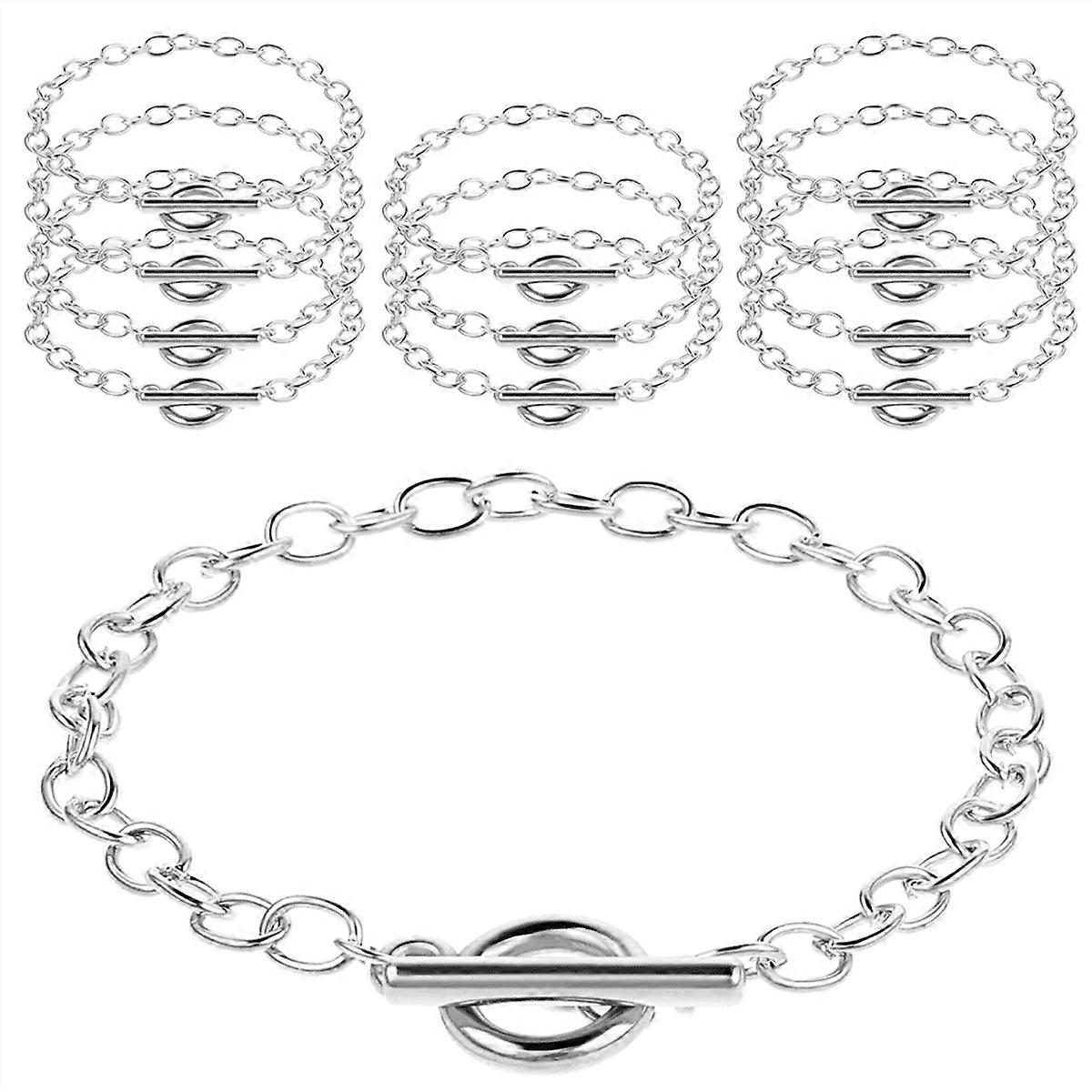 12 Pcs Chains Bracelets for Jewelry Making, Chain for Women, Link Chain Bracelets with OT Toggle Clasp,Silver