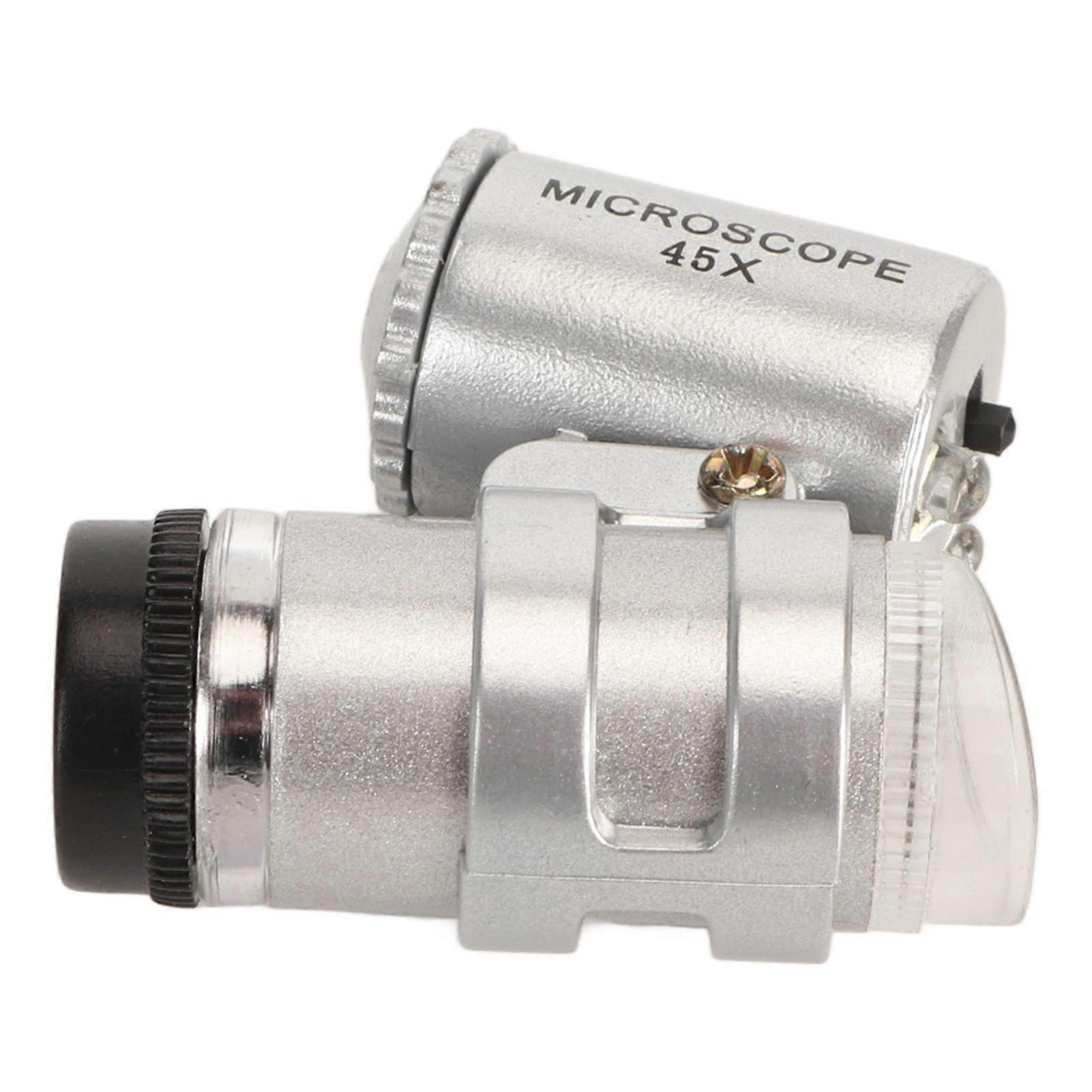 45X Mini Pocket Microscope with 2 LED Lights for Jewelry Antiques