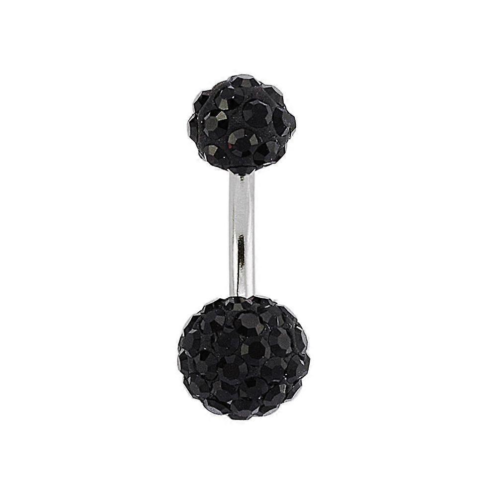 Jewelco London Sterling Silver Noir Black Crystal Disco Ball Banana Belly Bar 6mm 8mm