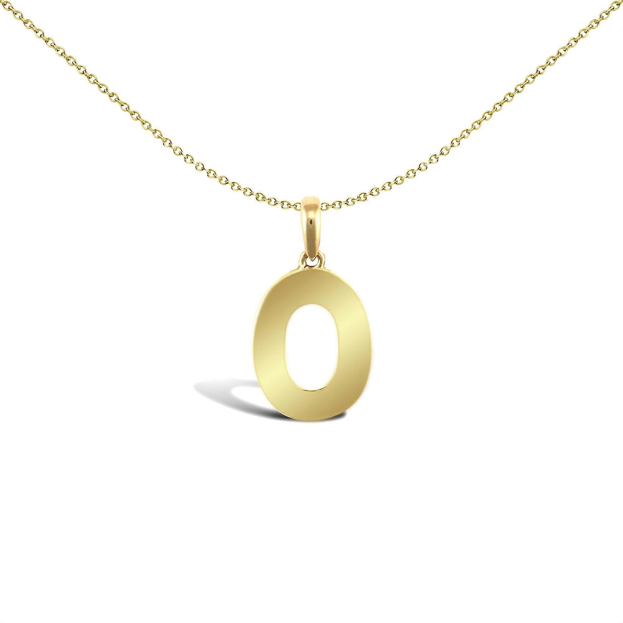 Jewelco London Solid 9ct Yellow Gold Polished Block Identity Initial Charm Pendant Letter O