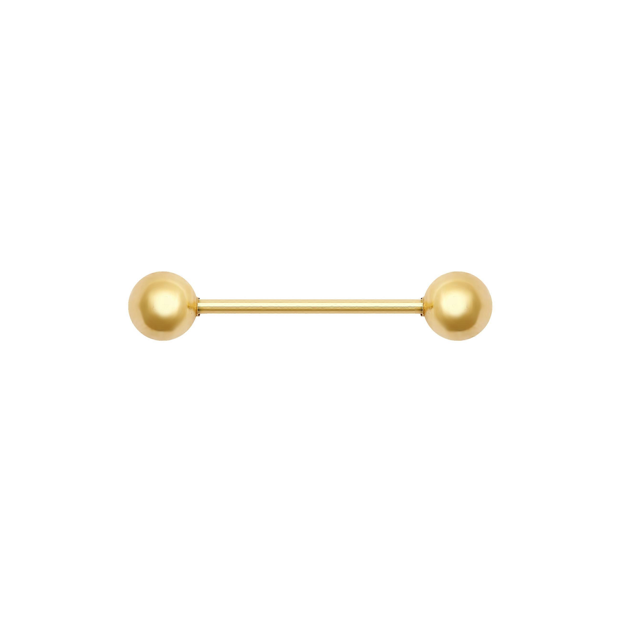 Jewelco London Unisex Solid 18ct Yellow Gold 1.1mm Gauge Barbell Body Bar Tongue Piercing, 22mm (12mm Bar)