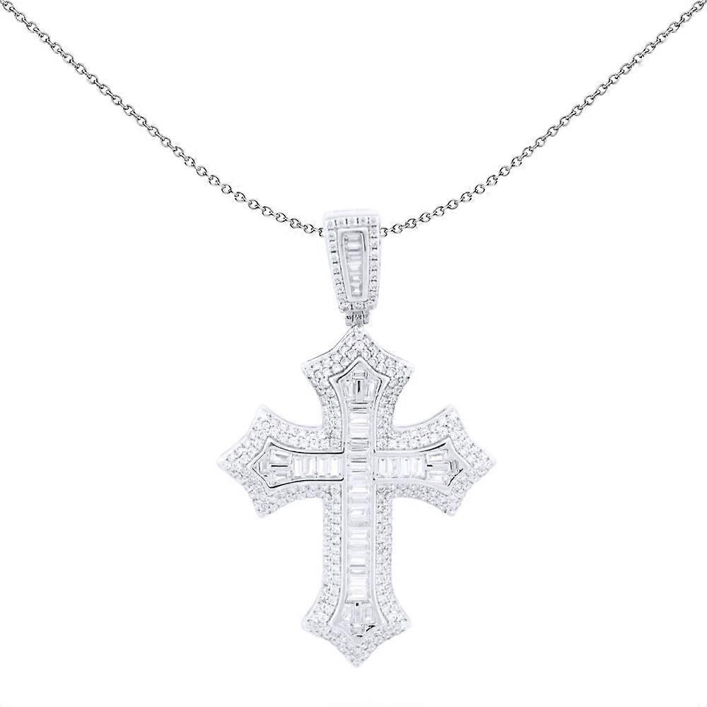 Jewelco London Unisex Rhodium Silver White Baguette CZ Spiked Fleur Arrowhead Cross Pendant