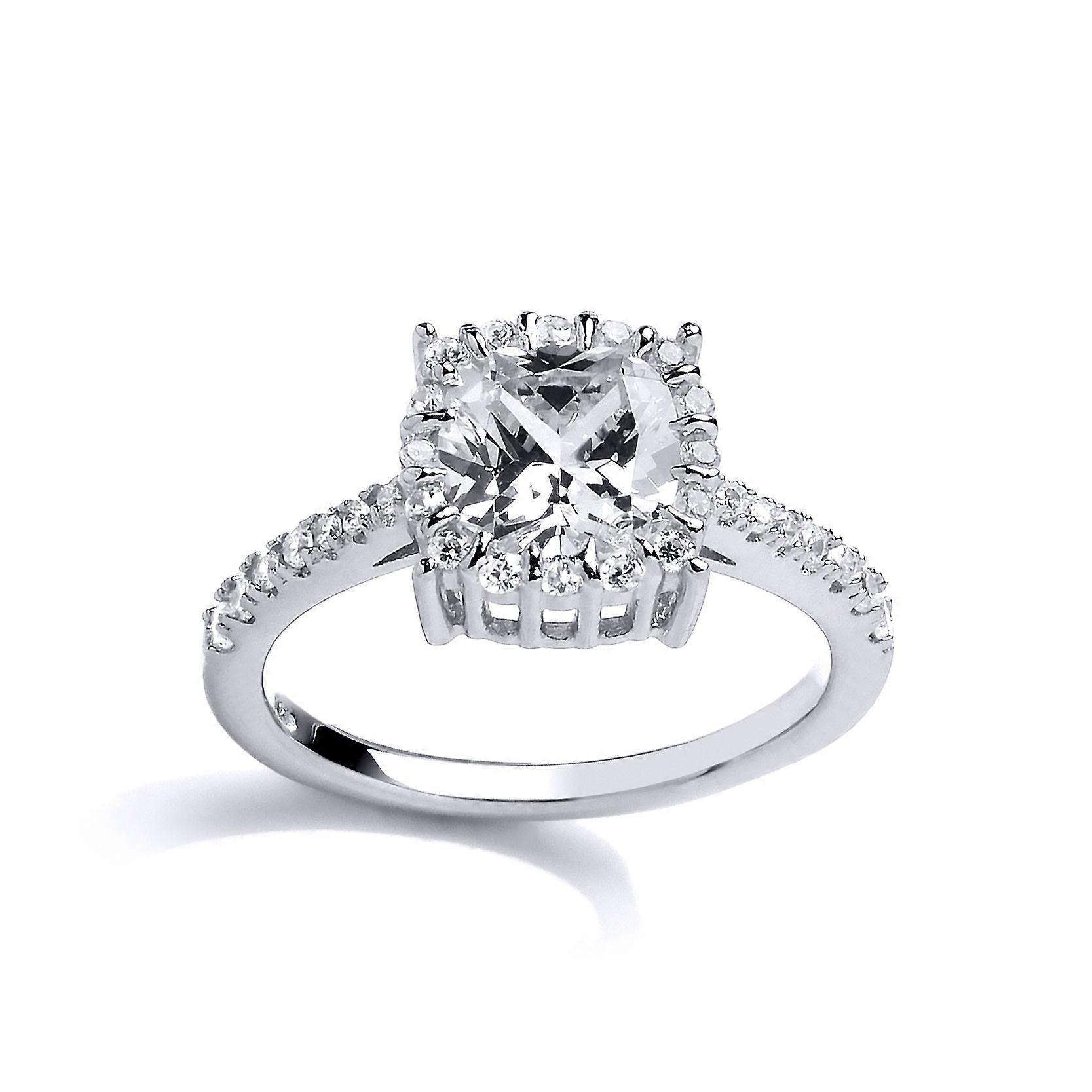 Jewelco London Ladies Sterling Silver Cubic zirconia Shoulder-Set Halo Solitaire Engagement Ring