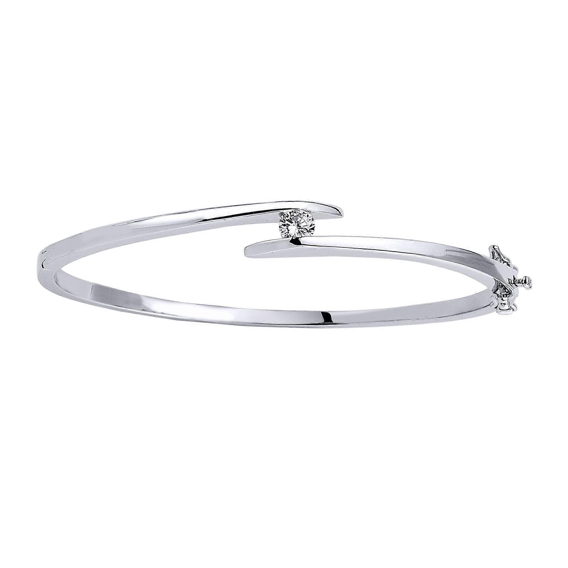 Jewelco London Ladies Sterling Silver Cubic Zirconia Solitaire Crossover Bangle Bracelet