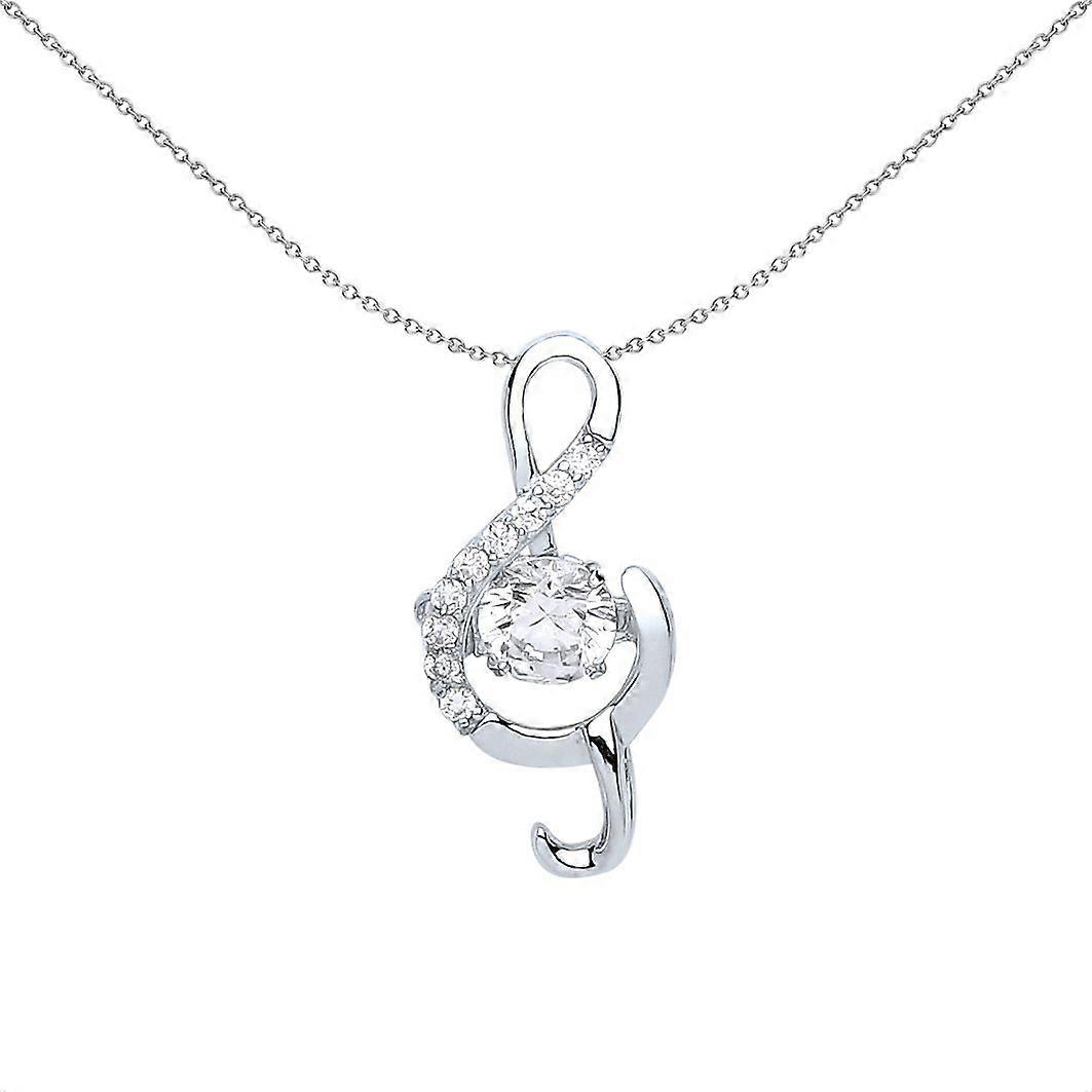 Jewelco London Ladies Sterling Silver Cubic Zirconia Treble Clef Solitaire Charm Necklace 18 inch