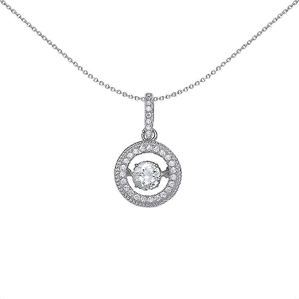 Jewelco London Ladies Sterling Silver Cubic Zirconia Floating Halo Pendant Necklace 18 inch