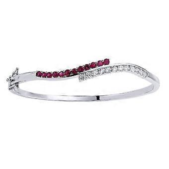 Jewelco London Ladies Sterling Silver Ruby-Red Cubic Zirconia Eternity Wave Bangle Bracelet