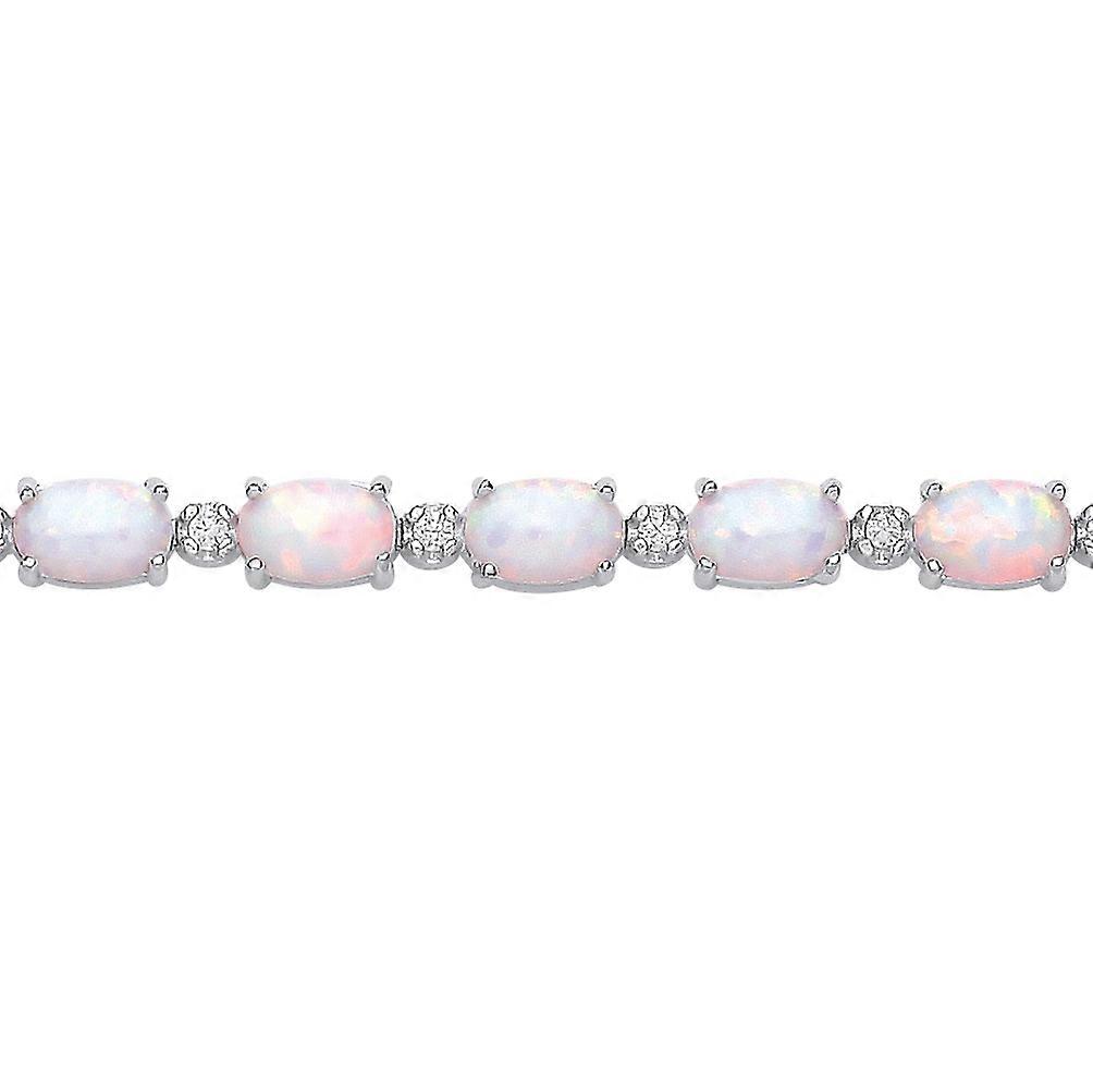 Jewelco London Ladies Rhodium Sterling Silver Rainbow Oval Opal CZ Lil n Large Alternating Tennis Bracelet