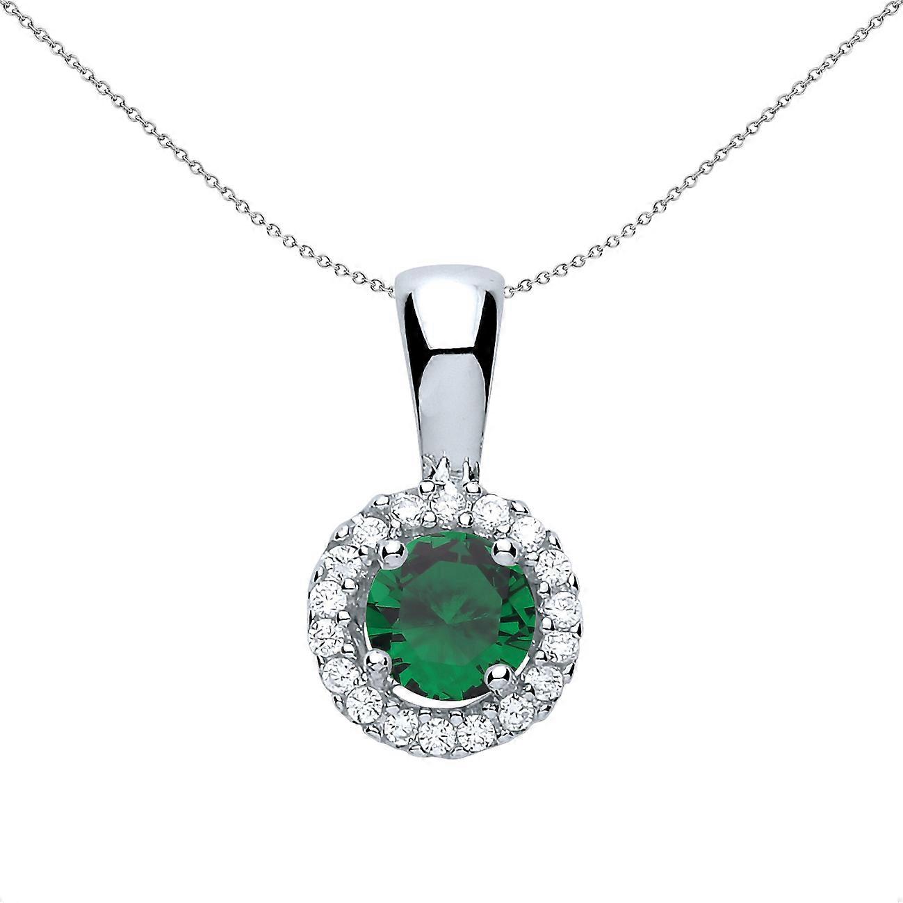 Jewelco London Ladies Rhodium Plated Sterling Silver Green CZ Solitaire Halo Pendant Necklace 18 inch