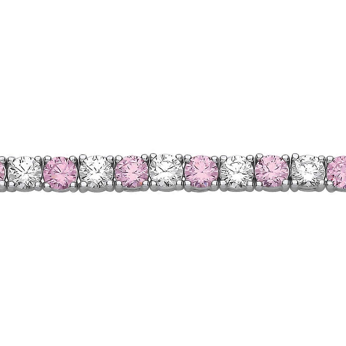 Jewelco London Ladies Rhodium Plated Sterling Silver Pink CZ 4 Claw Eternity Line Tennis Bracelet 3mm 5.5 inch