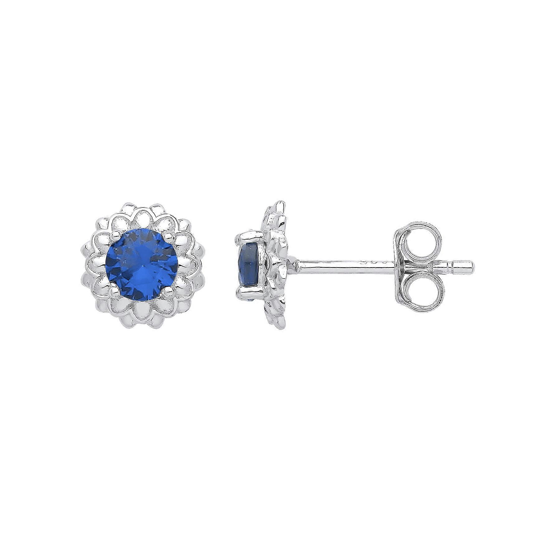 Jewelco London Ladies Rhodium Plated Sterling Silver Blue CZ Dalia Flower Petals Solitaire Stud Earrings