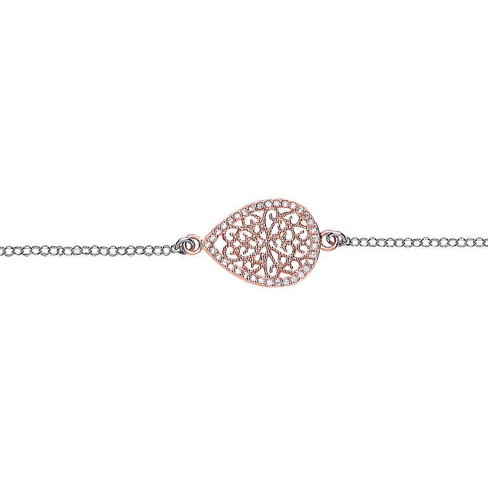 Jewelco London Ladies Rose Gold-Plated Sterling Silver White cubic Zirconia Filigree Tears of Joy Medallion Bracelet