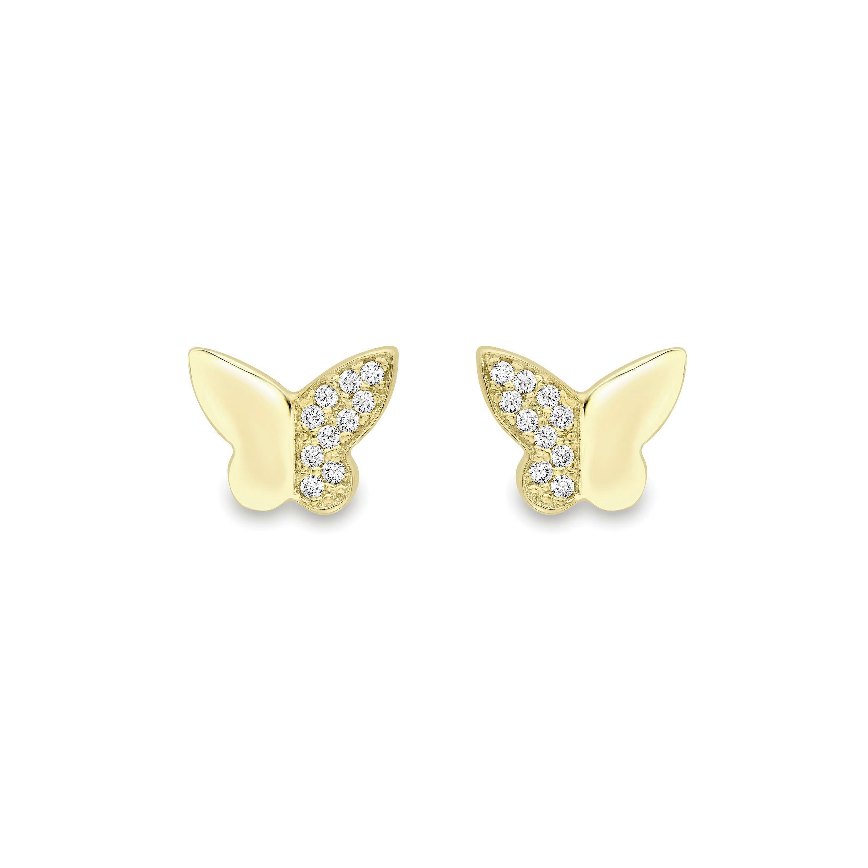 Jewelco London Ladies 9ct Yellow Gold Cubic Zirconia Semi Encrusted Floating Butterfly Stud Earrings 5mm
