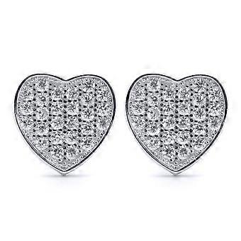Jewelco London Rhodium Silver Round CZ Encrusted Love Heart Stud Earrings