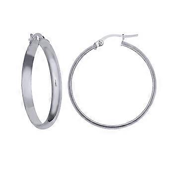 Jewelco London Rhodium Silver D-Shape Wedding Band Style 4mm Hoop Earrings 25mm
