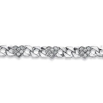 Jewelco London Rhodium Plated Sterling Silver Round Cubic Zirconia Love Heart Curb Bracelet 8mm 7.5 inch