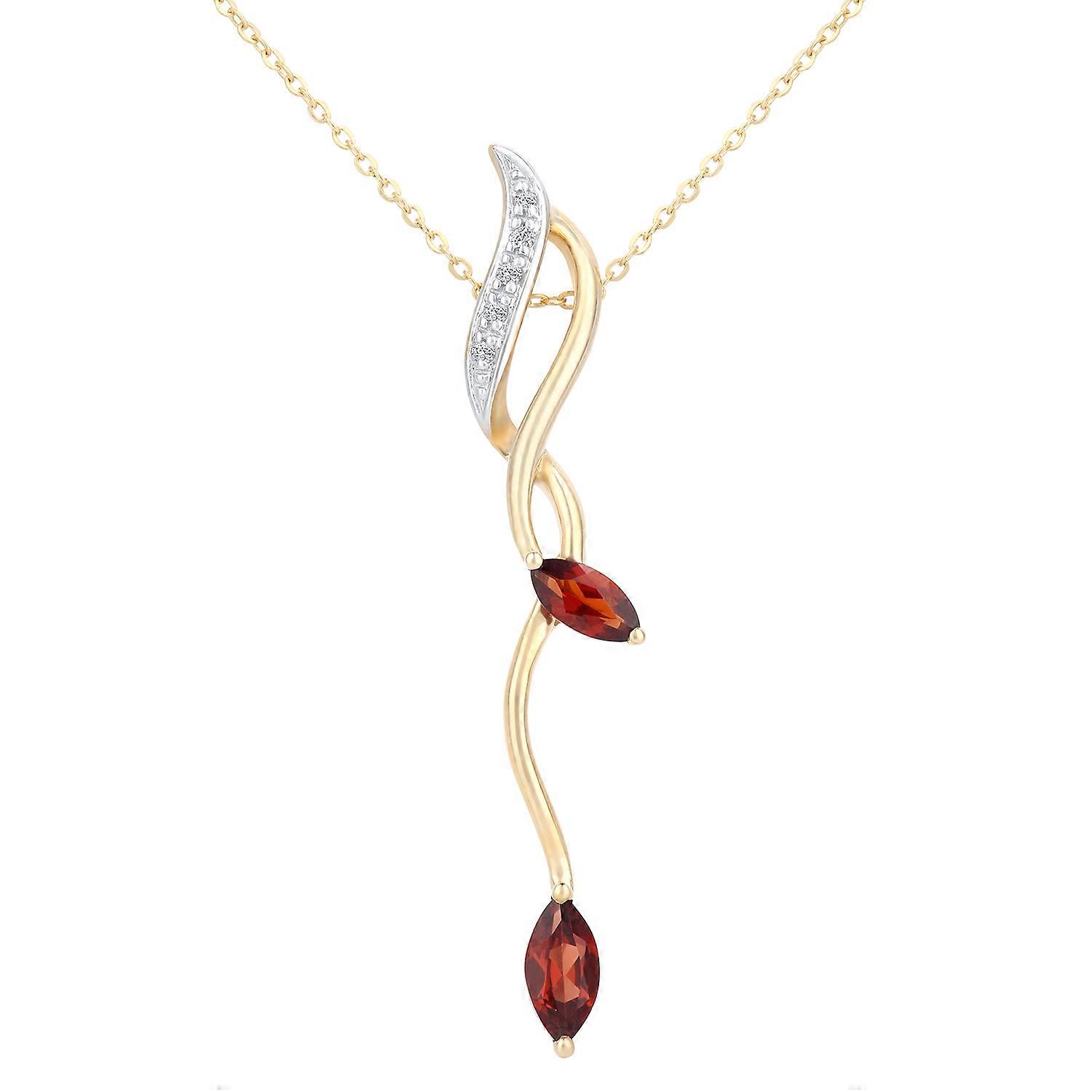Jewelco London 9ct Yellow Gold Round 2pts Diamond Marquise 0.48ct Garnet Stick Pendant Necklace 18 inch 46cm