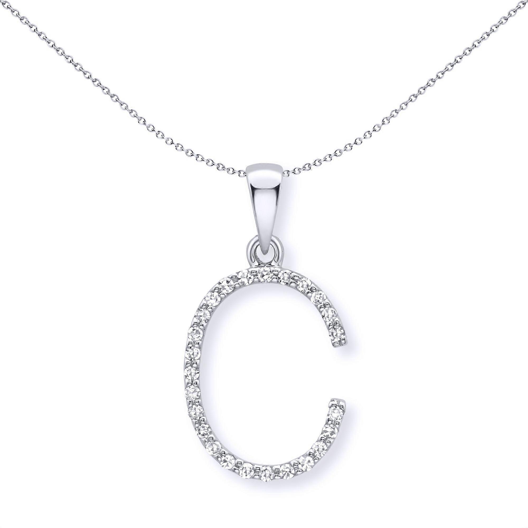 Jewelco London 9ct White Gold Diamond Initial Charm Pendant Letter C 10mm x 17mm