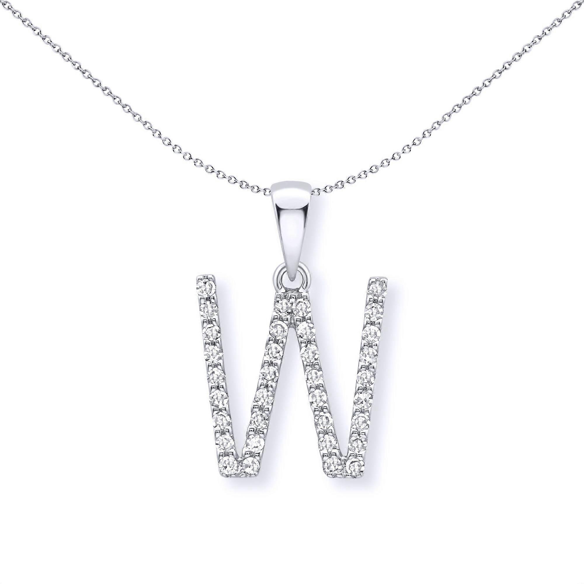 Jewelco London 9ct White Gold Diamond Initial Charm Pendant Letter W 9mm x 15mm