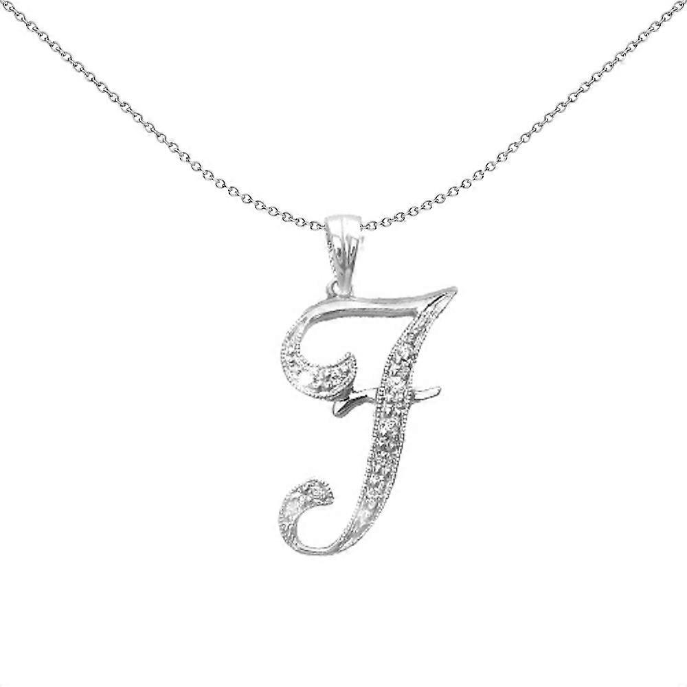 Jewelco London 9ct White Gold Pave Set Round G SI 0.05ct Diamond Identity Script Initial ID Charm Pendant Letter F