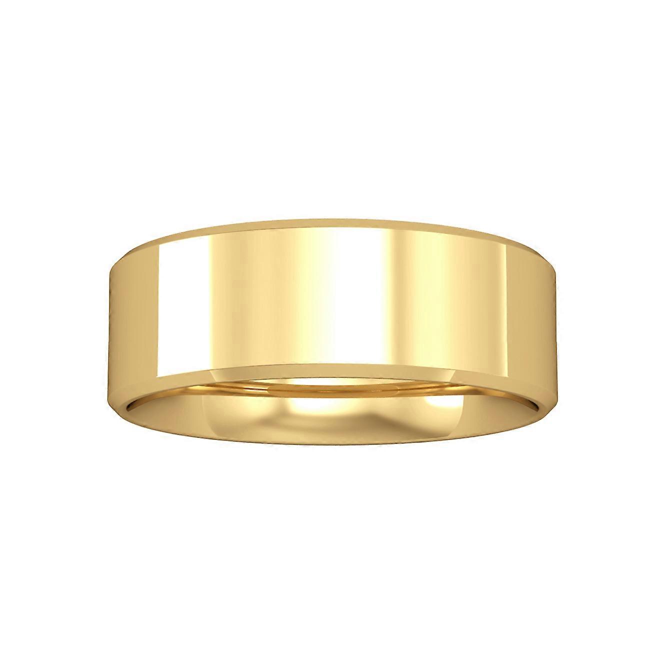 Jewelco London 9ct Yellow Gold Flat-Court Bevelled Band Wedding Ring 7mm