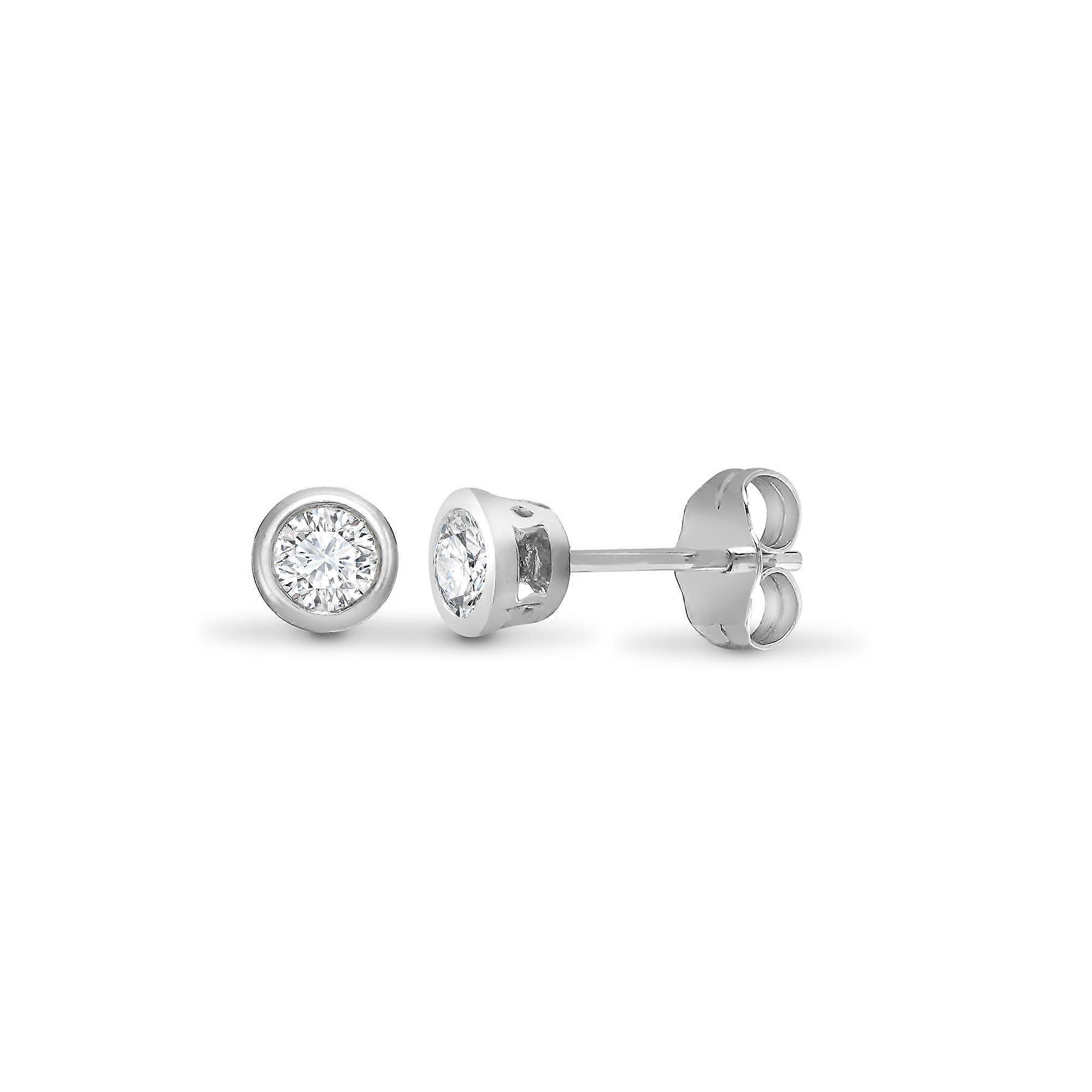 Jewelco London Ladies Solid 18ct White Gold Rub Over Set Round G SI1 0.1ct Diamond Solitaire Stud Earrings