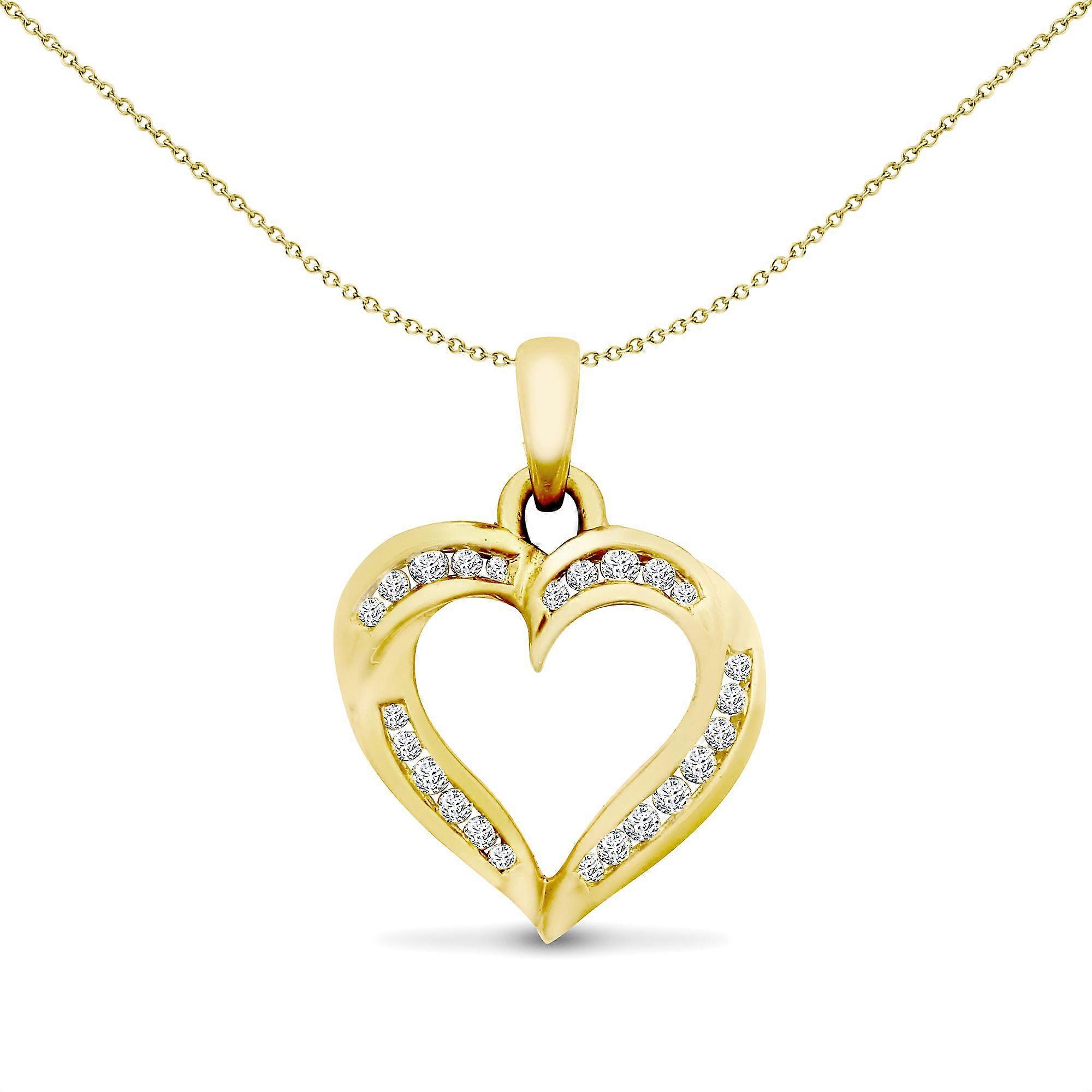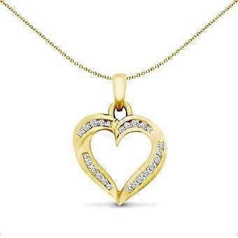 Jewelco London Ladies Solid 9ct Yellow Gold Channel Set Round H I1 0.19ct Diamond Twisted Love Heart Charm Pendant