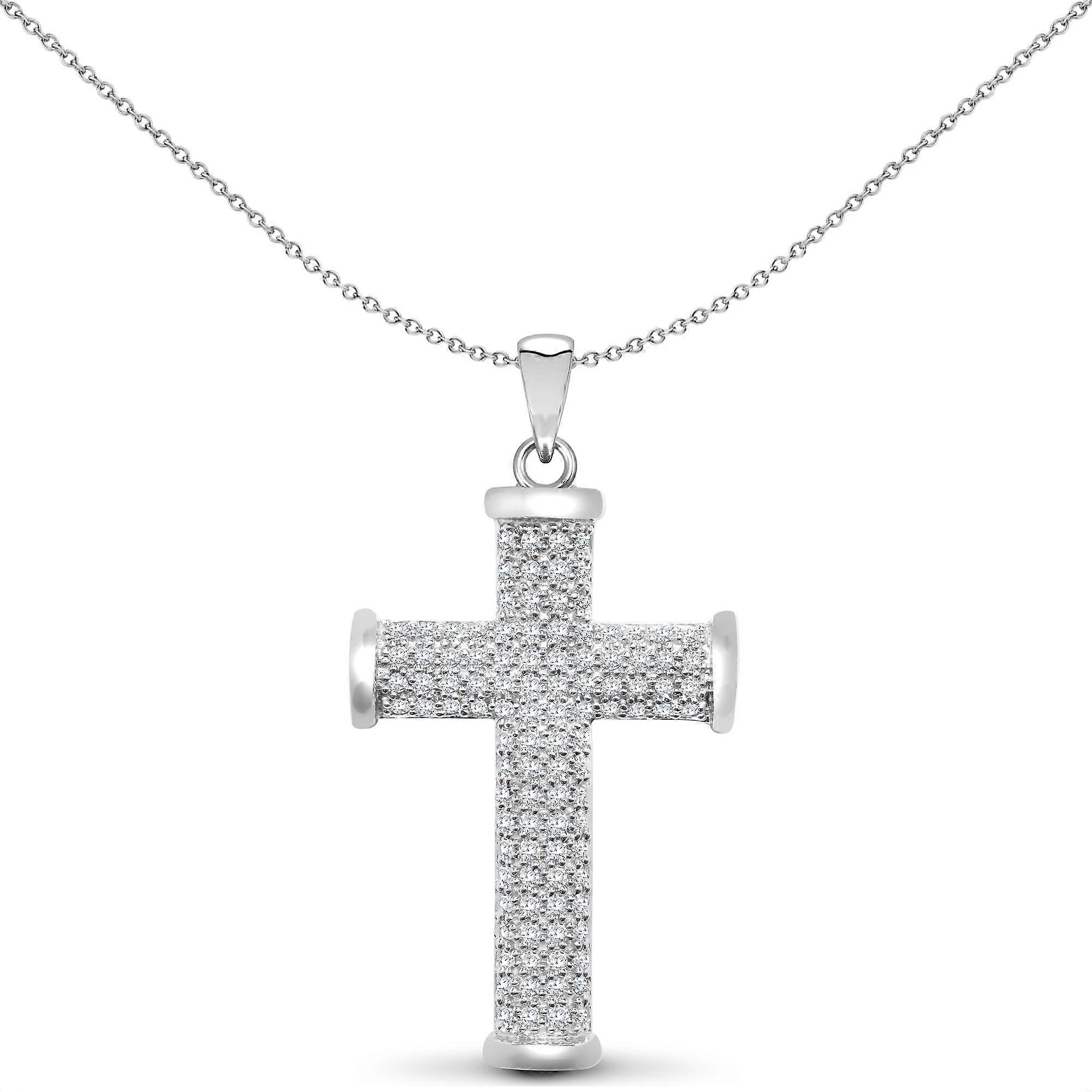 Jewelco London Ladies Solid 9ct White Gold Pave Set Round H I1 0.5ct Diamond Collared Cross Pendant