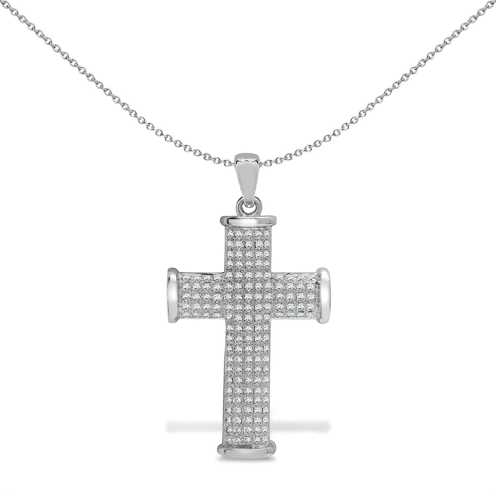 Jewelco London Ladies Solid 9ct White Gold Pave Set Round H I1 1ct Diamond Collared Cross Pendant