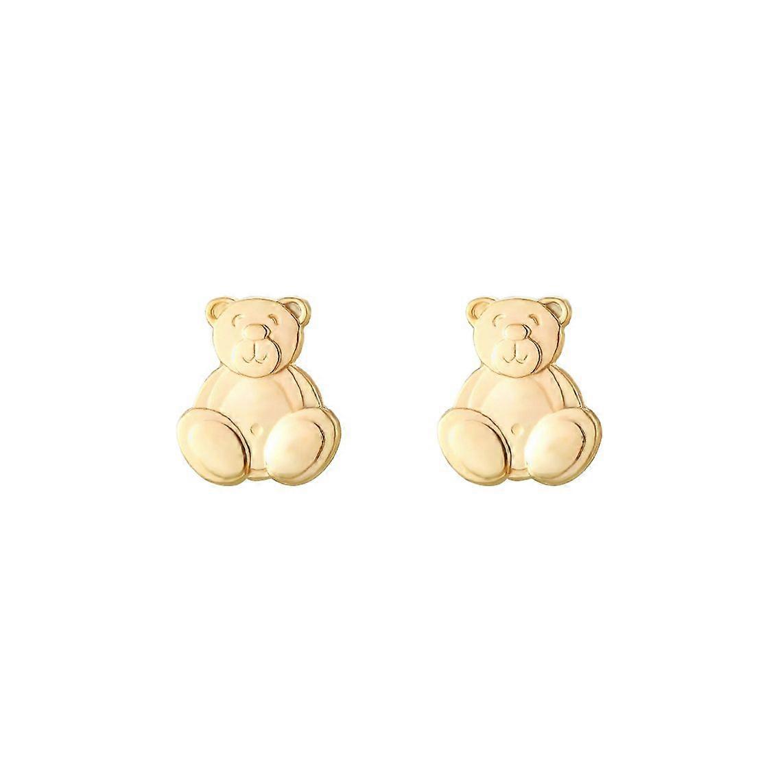 Jewelco London Ladies 9ct Yellow Gold Happy Teddy Bear Stud Earrings