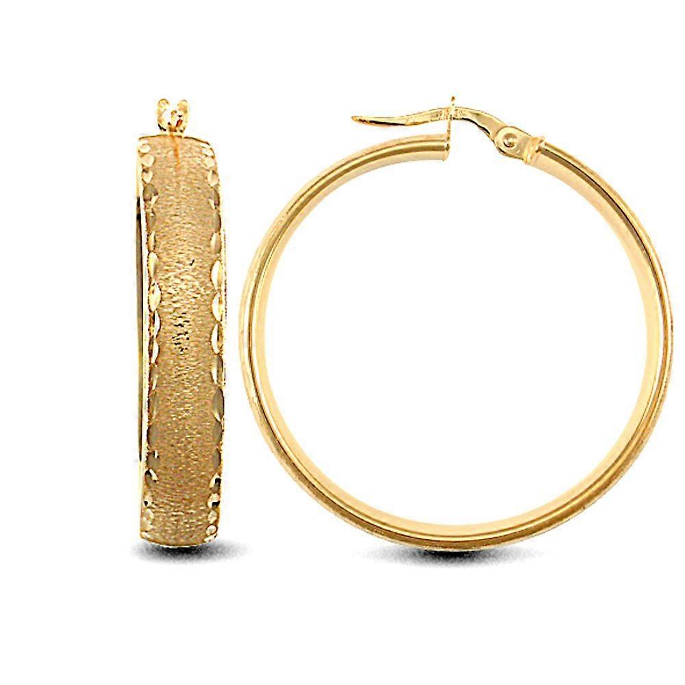 Jewelco London Ladies 9ct Yellow Gold Frosted Diamond Cut Wedding Band 6mm Hoop Earrings 32mm