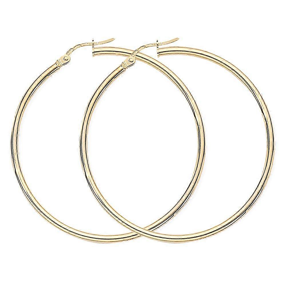 Jewelco London Ladies 9ct Yellow Gold 2mm Gauge Thin Light Hoop Earrings - 42mm