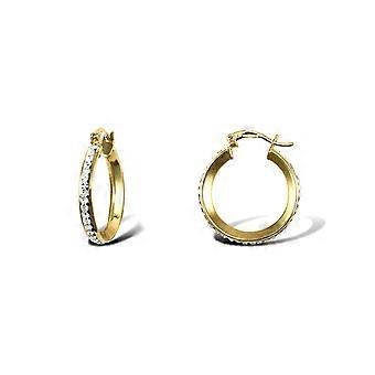 Jewelco London Ladies 9ct Yellow Gold White Round Crystal Eternity 3mm Hoop Earrings 21mm