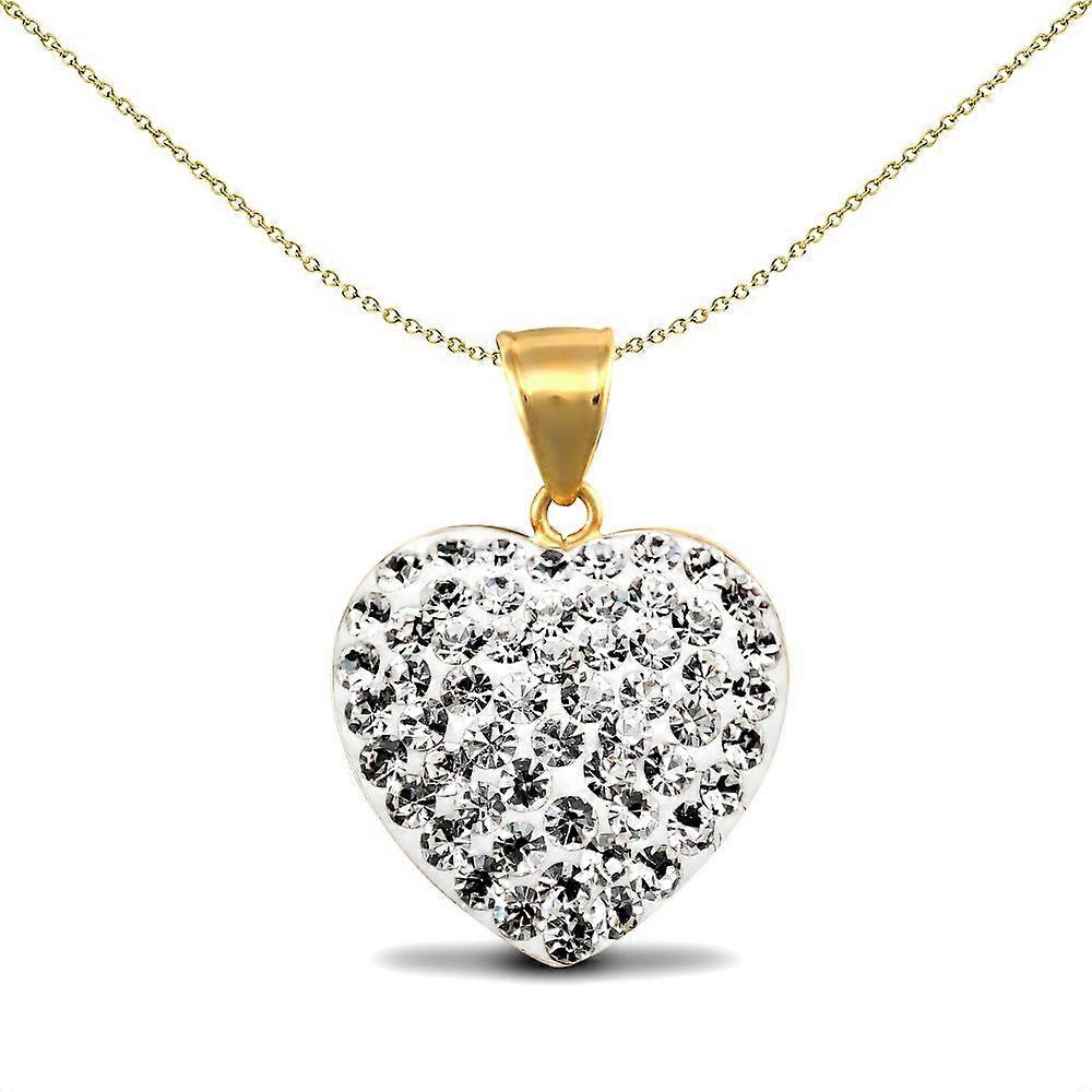 Jewelco London Ladies 9ct Yellow Gold White Round Crystal Love Heart Charm Pendant