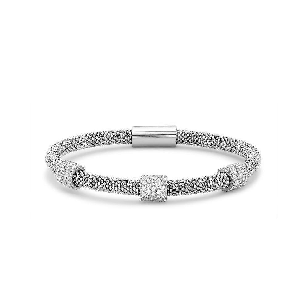 Jewelco London Rhodium Coated Sterling Silver Cubic Zirconia 3 Beads Popcorn Bracelet - 5mm