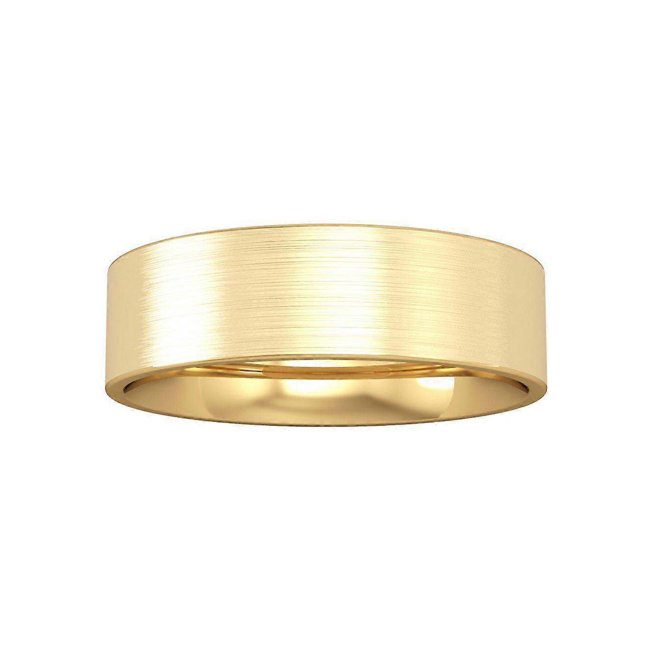 Jewelco London 9ct Yellow Gold 6mm Flat Court Satin-Brushed Wedding Ring