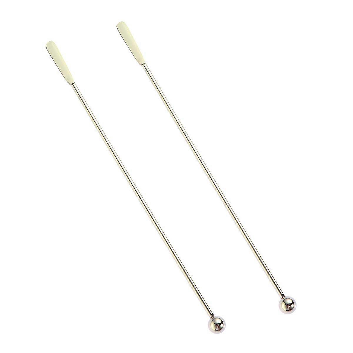 Juice Stirring Stick Flat and Round Bead Shape Stainless Steel Fruit Stick Cocktails 5Pcs