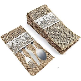 ジュートカトラリーホルダー、20個のカトラリーバッグ素朴なジュートレースカトラリーホルダーシルバーウェアホルダー、ウェディングパーティークリスマスデコレーション用
