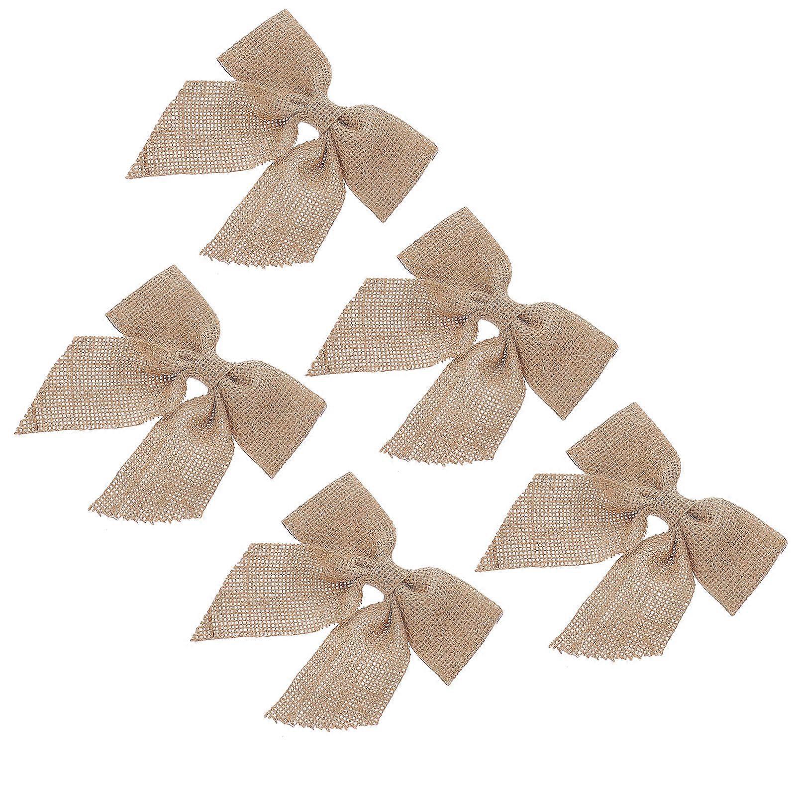 Khaki Bow Decorations for Christmas and Wedding Made of Jute 5 Pieces